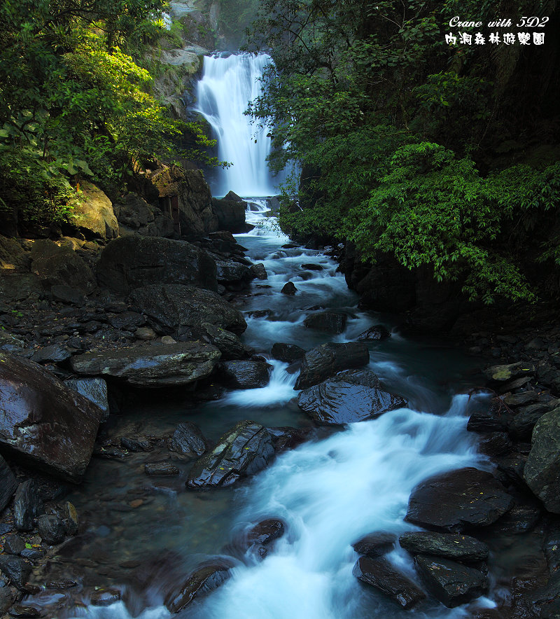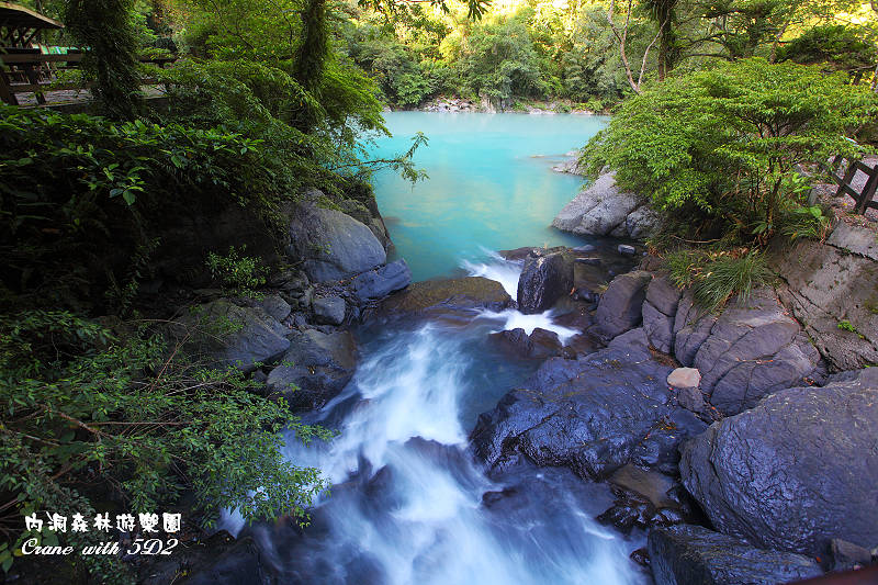 #8由橋上往第一層瀑布向下游拍去,頓時一片光明綠意湧現