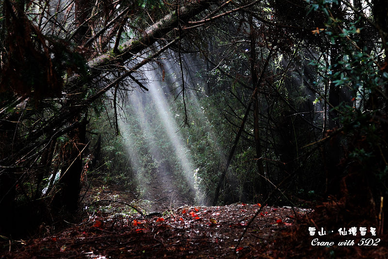 #8拍團體照的同時,突然發現林中有一道耶穌光打下來,只有十幾秒的光影,一下