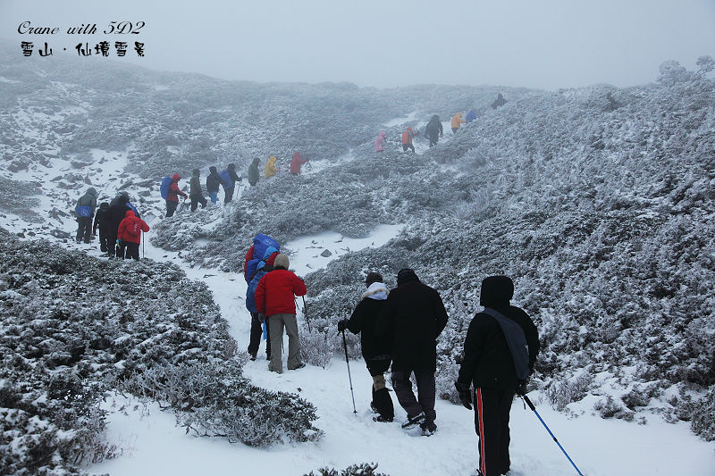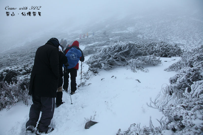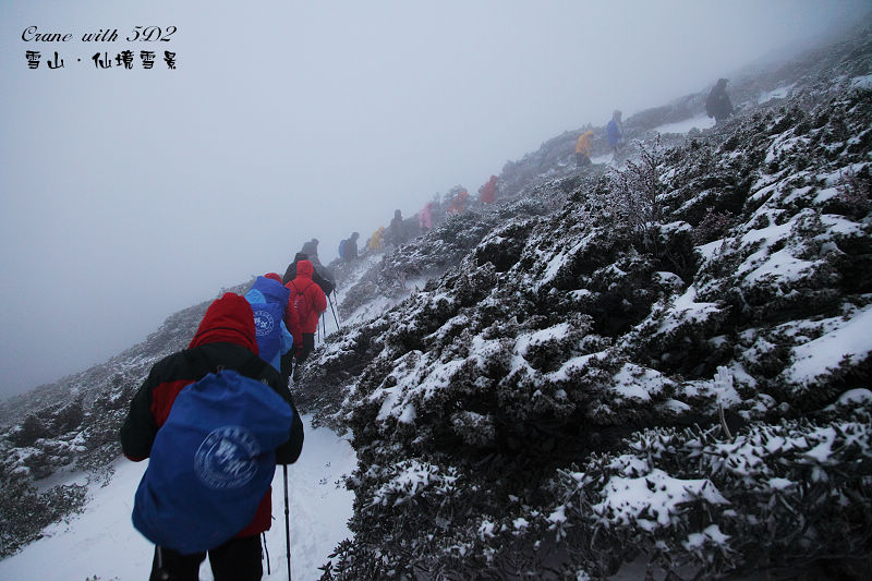 #36接近雪山主峰頂300公尺時,最前方的領隊突然停下來,要大家先原地休息