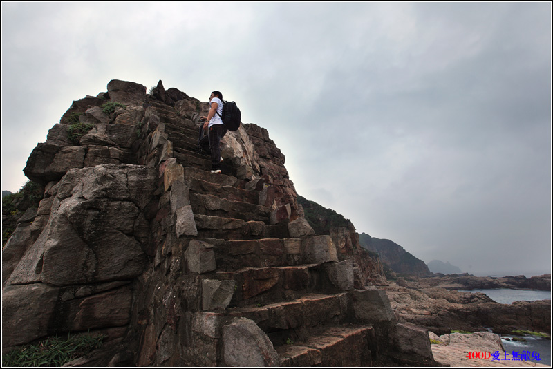 #12要靠近海邊到下方的岩石拍浪花,還必須攀爬繩子下去,而我們為了保護